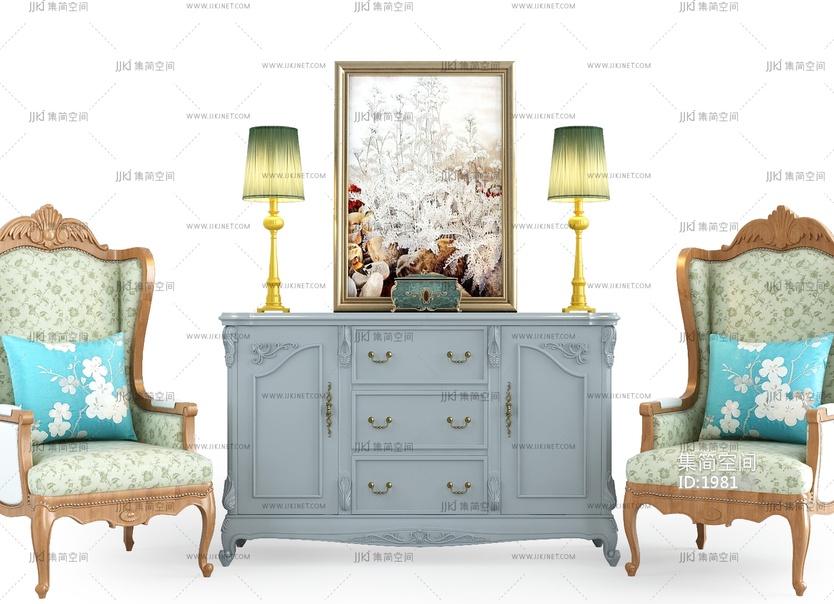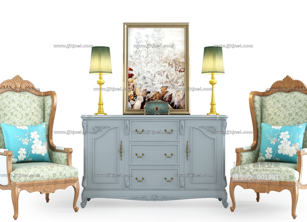 法式橱柜法式中古风装饰柜挂画,落地灯3D模型3d模型下载
