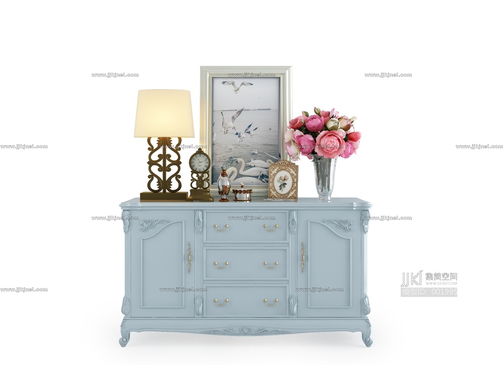 美式玄关柜摆台装饰画3D模型下载3d模型下载