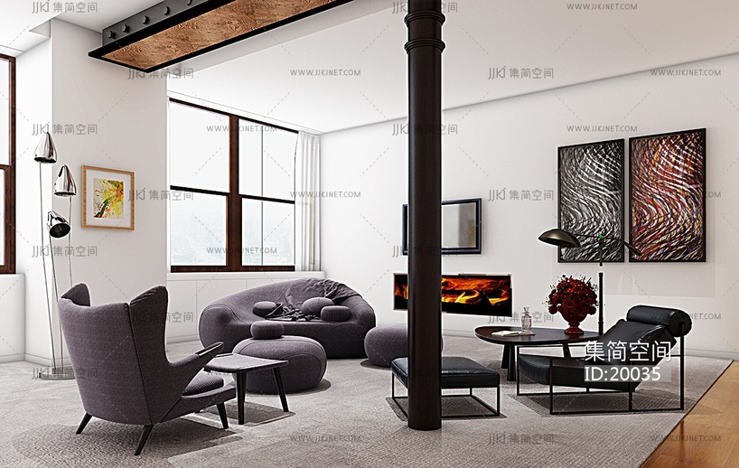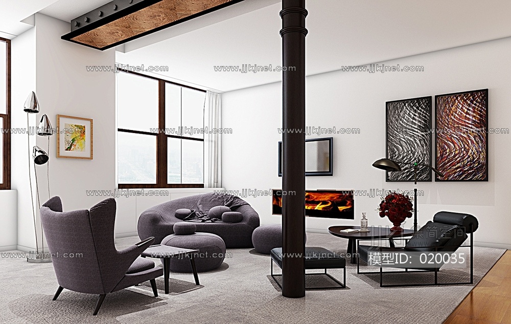 H03-0212北欧现代休闲沙发椅子躺椅组合 3d模型下载 [模型ID:20035]