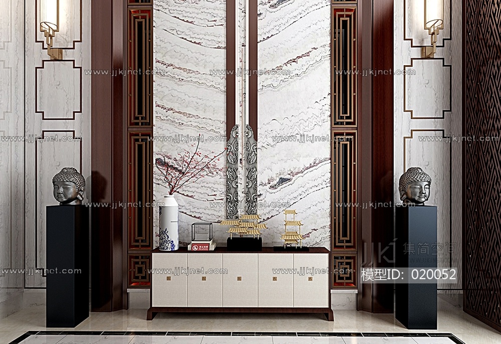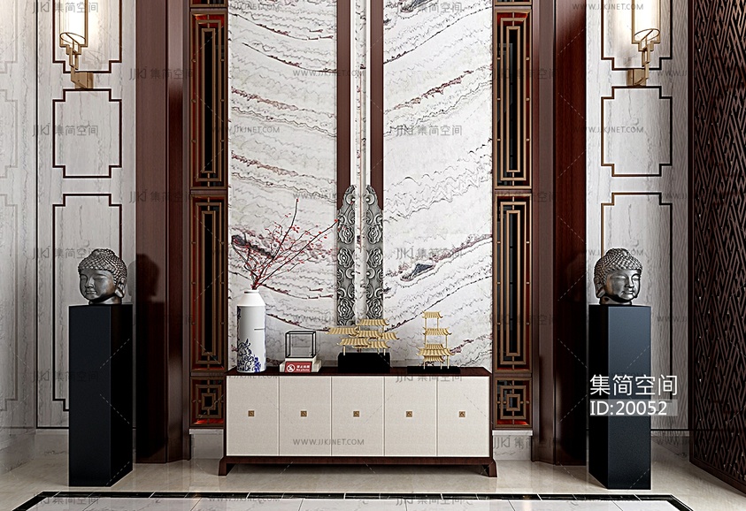H27-0212新中式电视柜门佛头摆件 3d模型下载 [模型ID:20052]