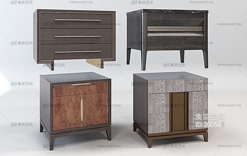 H26-0212新中式床头柜组合 3d模型下载 [模型ID:20058]