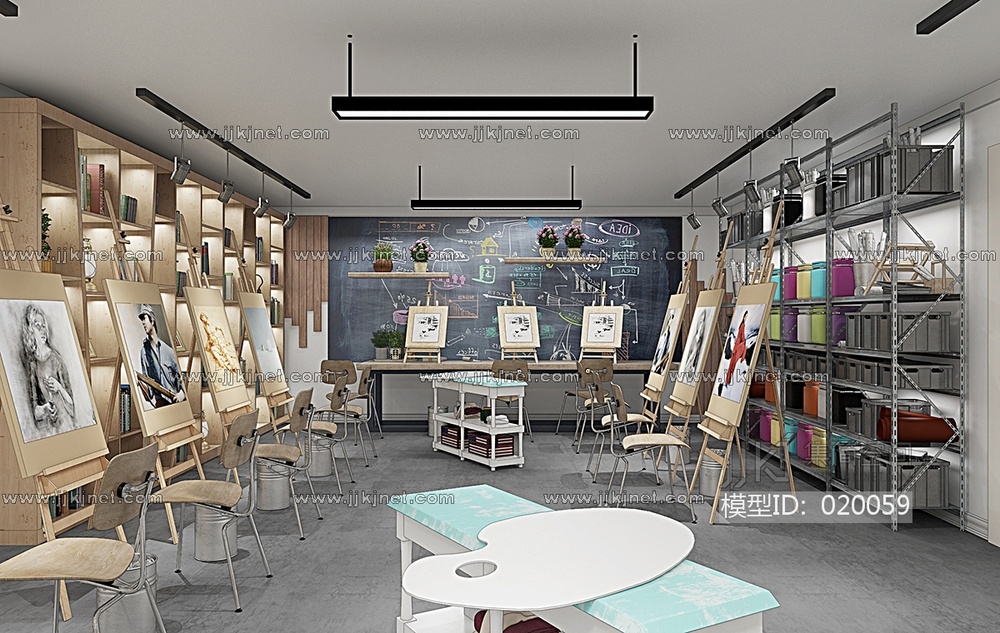 现代幼儿园,幼儿园活动室教师儿童区3d模型下载