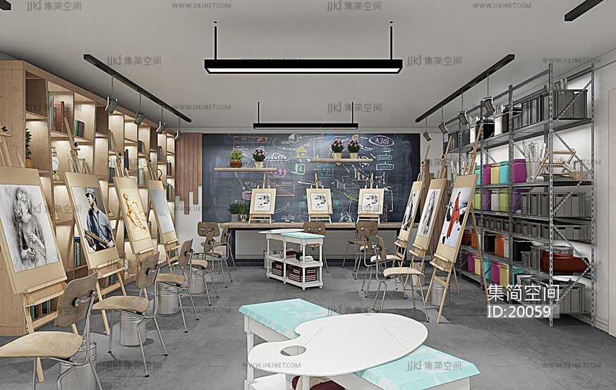 H24-0212学校画室画架美术器材画板 3d模型下载 [模型ID:20059]
