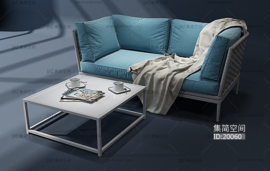 H01-0213现代布艺双人沙发组户外藤椅休闲沙发咖啡杯1 3d模型下载 [模型ID:20060]