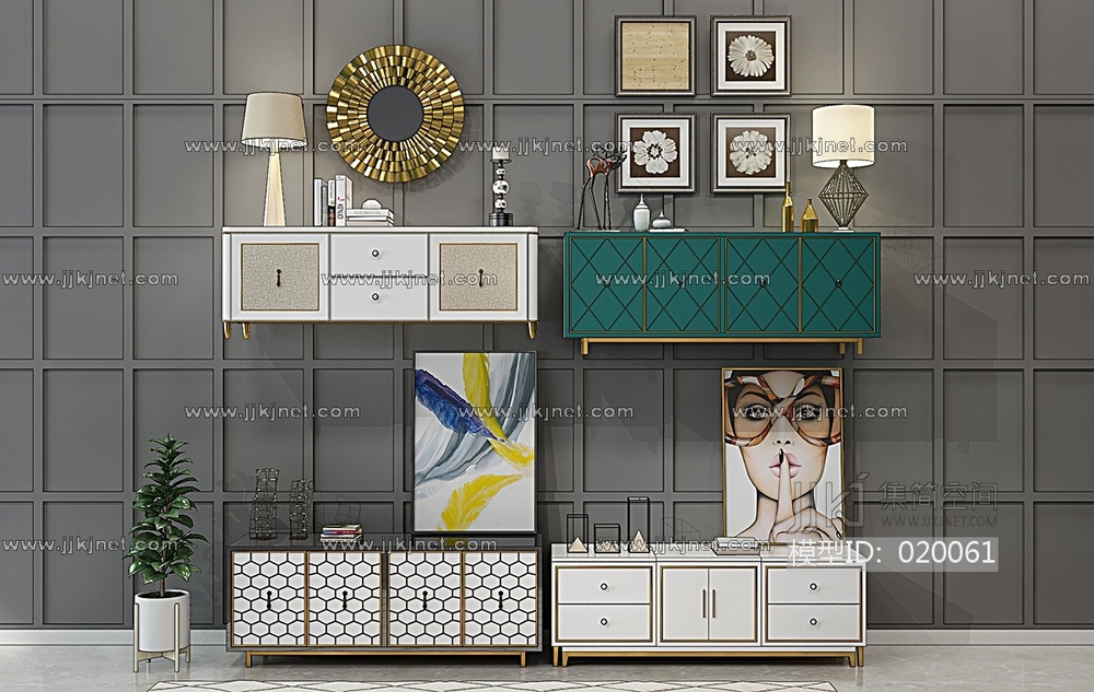欧式电视柜酒柜摆件组合3D模型3d模型下载