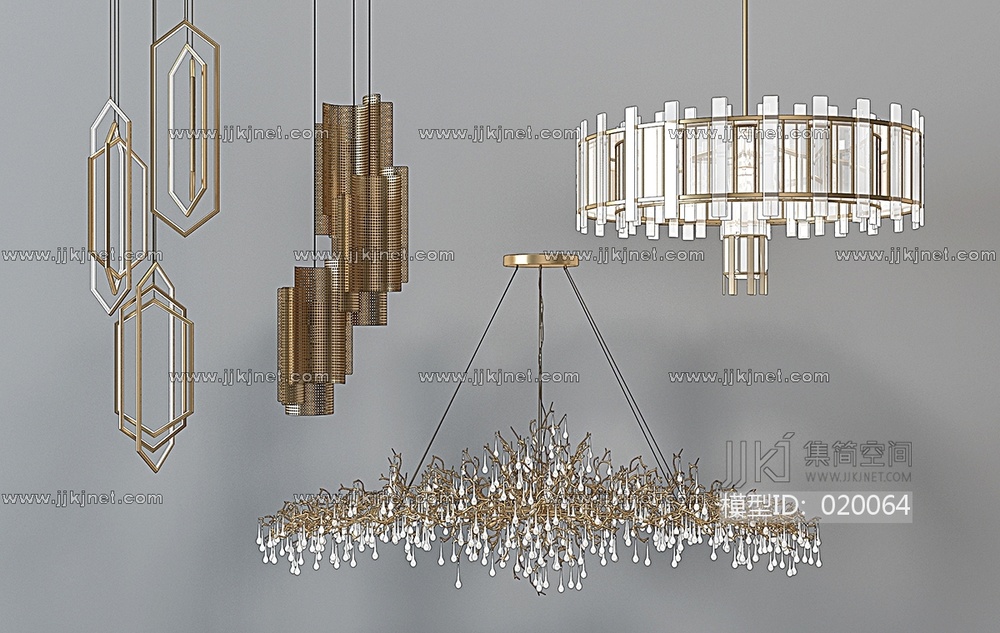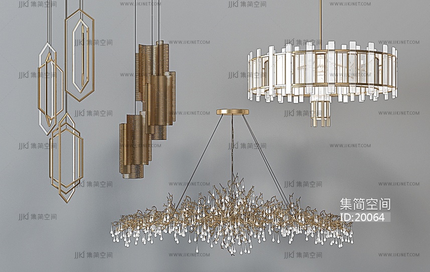 H05-0213现代金属水晶树枝吊灯组合1 3d模型下载 [模型ID:20064]