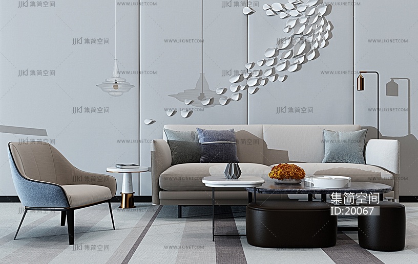 H08-0213现代沙发墙饰挂件组合1 3d模型下载 [模型ID:20067]