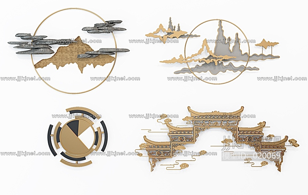 H10-0213新中式金属墙饰挂饰挂件1 3d模型下载 [模型ID:20069]