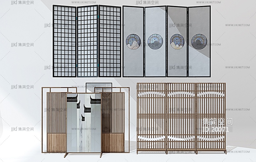 H12-0213新中式屏风隔断花格1 3d模型下载 [模型ID:20071]