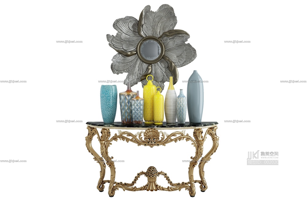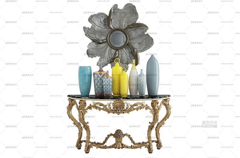09-319欧式法式雕花玄关柜摆台镜子条案摆台花瓣雕塑 3d模型下载 [模型ID:2020]
