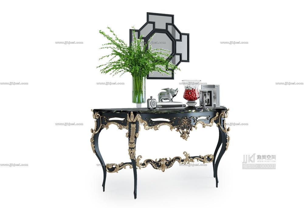 新中式条案 端景台,格栅3d模型 3d模型下载