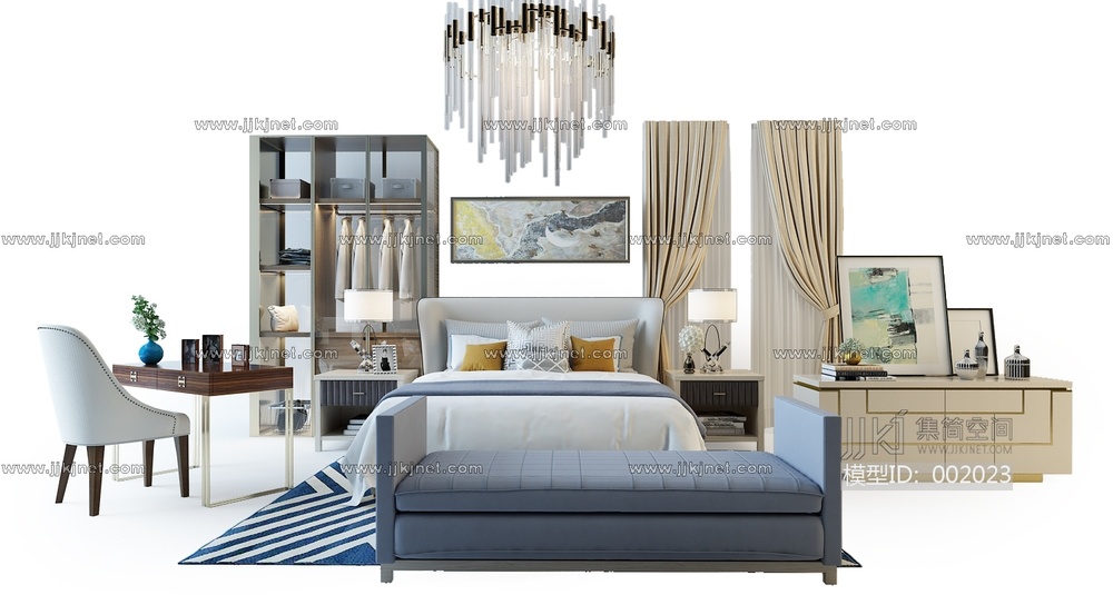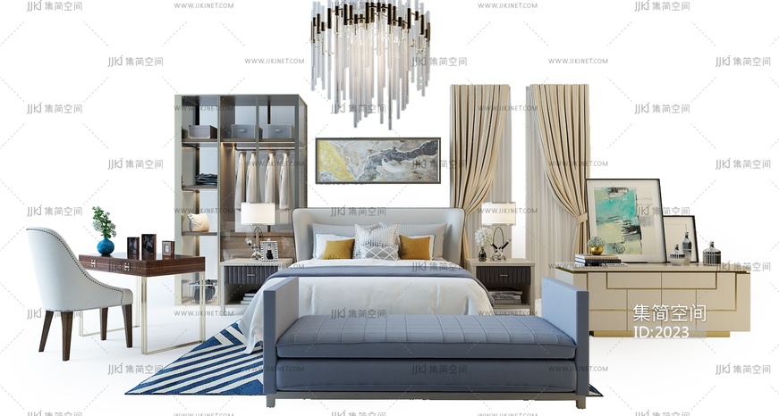 G38-16简欧床电视柜 3d模型下载 [模型ID:2023]