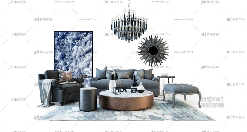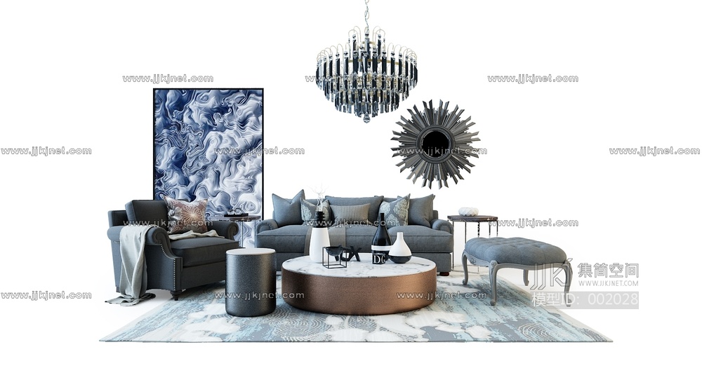 H42-16简欧沙发组合 3d模型下载 [模型ID:2028]