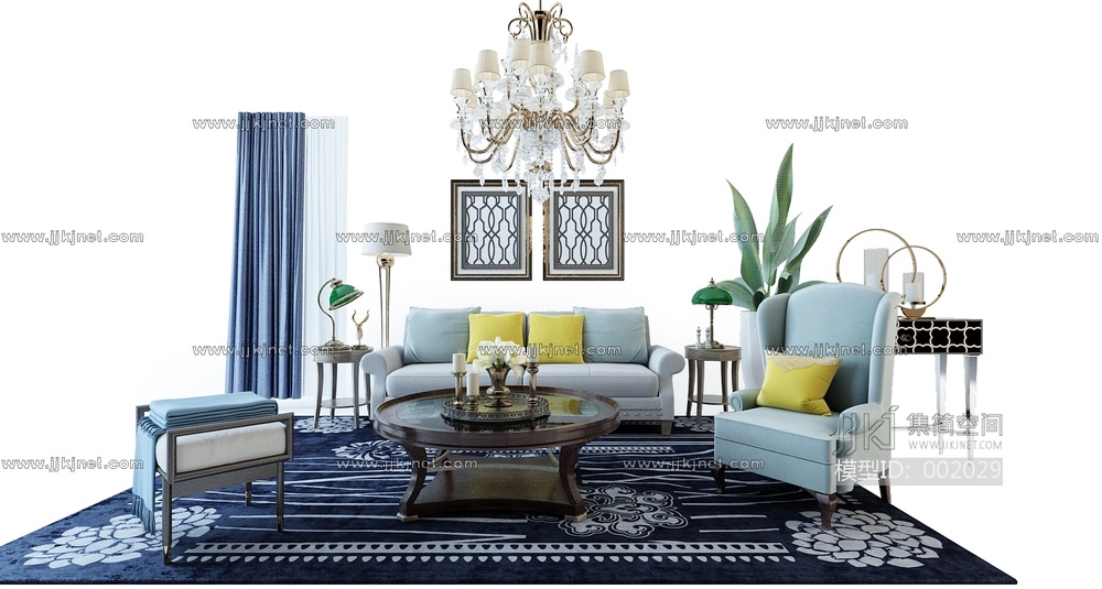 H44-16欧式沙发组合 3d模型下载 [模型ID:2029]