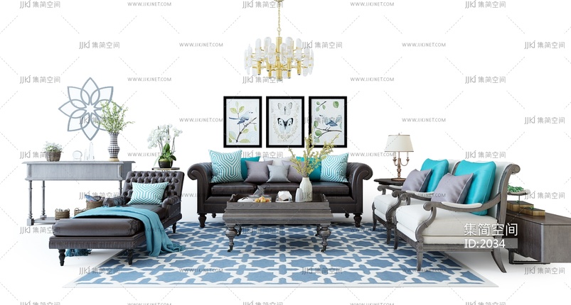 Z20-16欧式沙发组合玄关柜v 3d模型下载 [模型ID:2034]