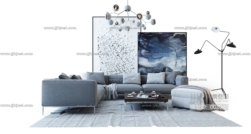 H-04-321现代沙发组合 3d模型下载 [模型ID:2043]