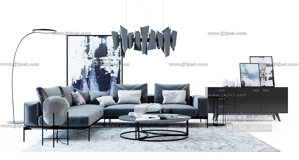 H-09现代沙发组合电视柜 3d模型下载 [模型ID:2046]