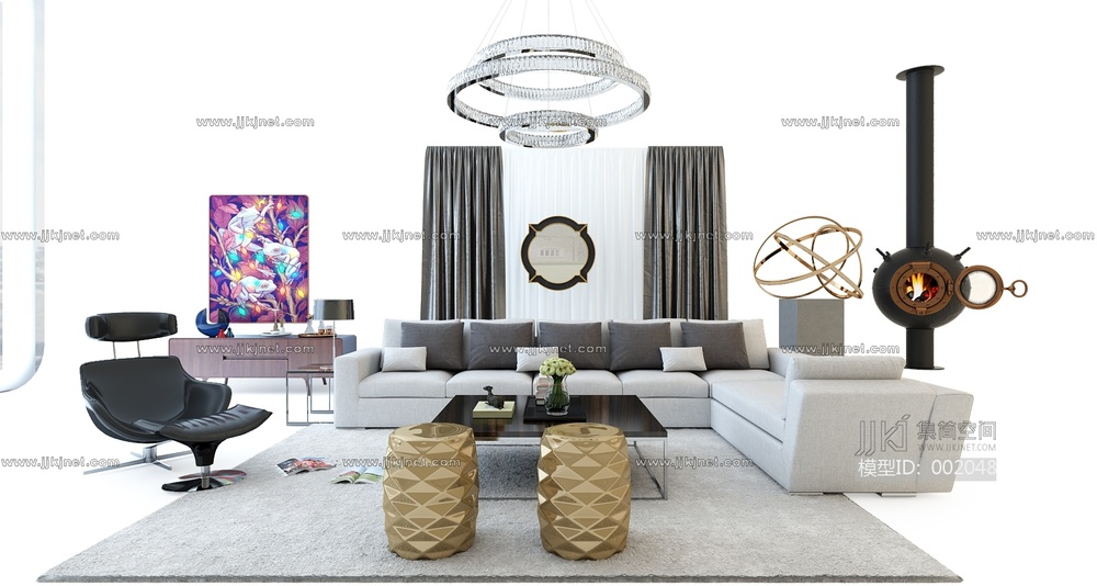 L73-17现代沙发组合圆形火炉 3d模型下载 [模型ID:2048]