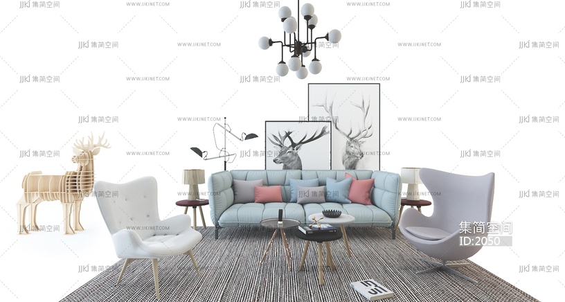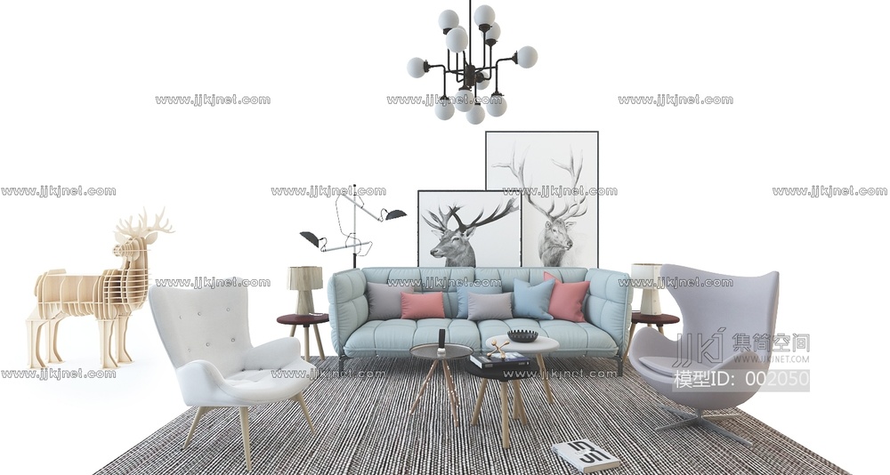 X01现代沙发组合 3d模型下载 [模型ID:2050]