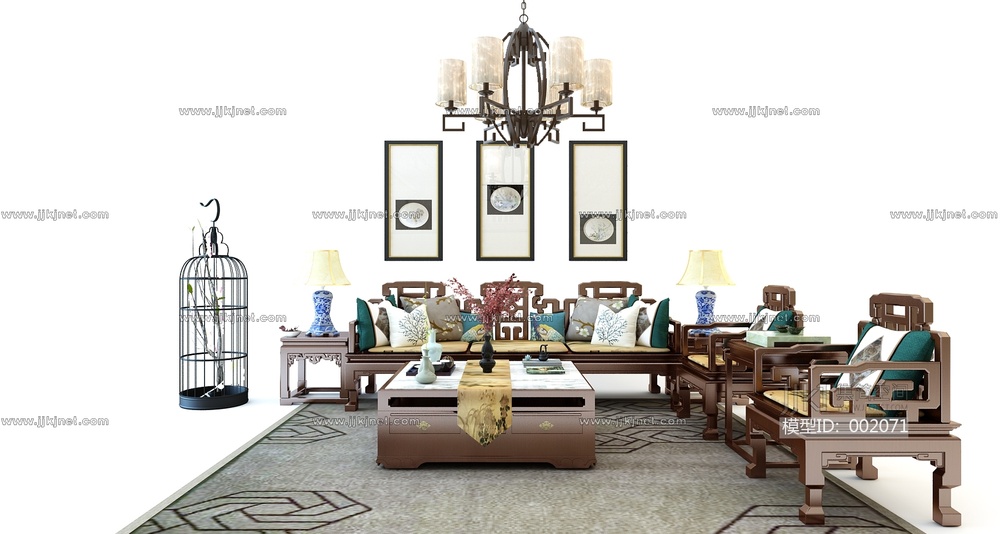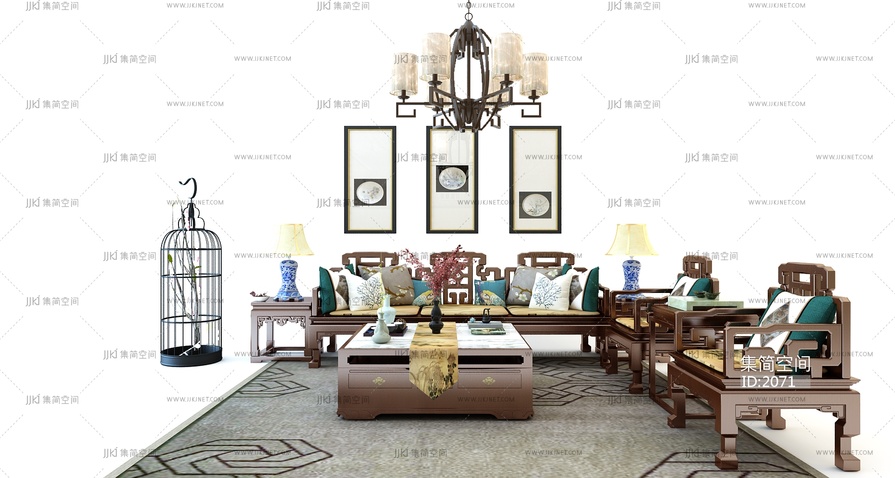 L70-17古典中式沙发组合鸟笼装饰 3d模型下载 [模型ID:2071]