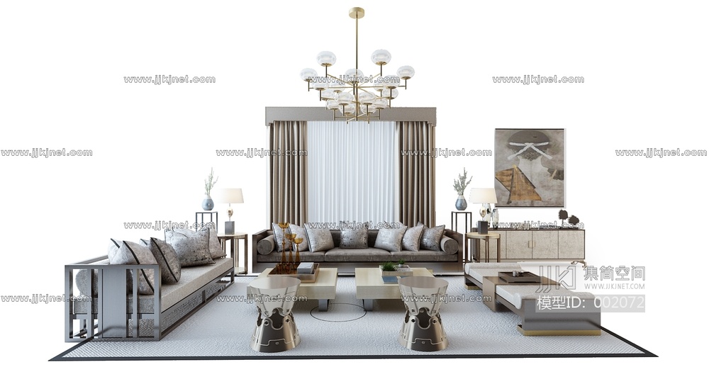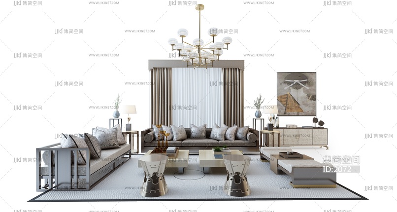 Z27-16中式沙发组合玄关柜 3d模型下载 [模型ID:2072]