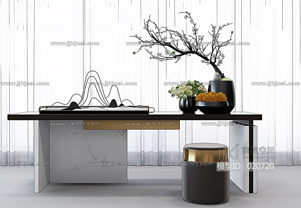 H06-0214新中式茶台端景盆栽花盆组合1 3d模型下载 [模型ID:20720]
