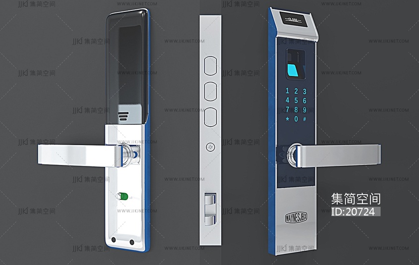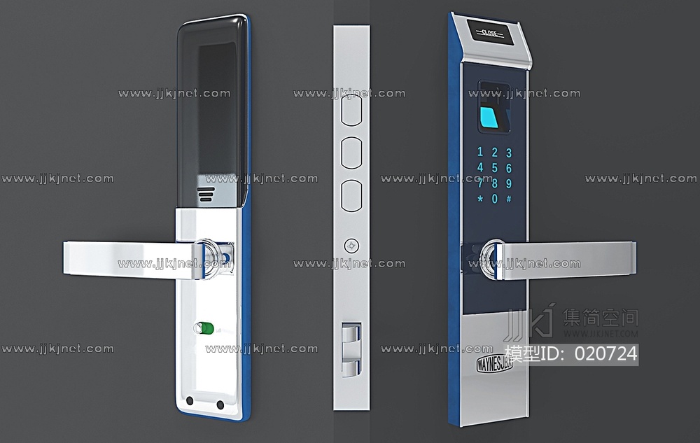 H10-0214现代指纹密码锁门把手1 3d模型下载 [模型ID:20724]