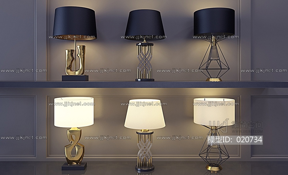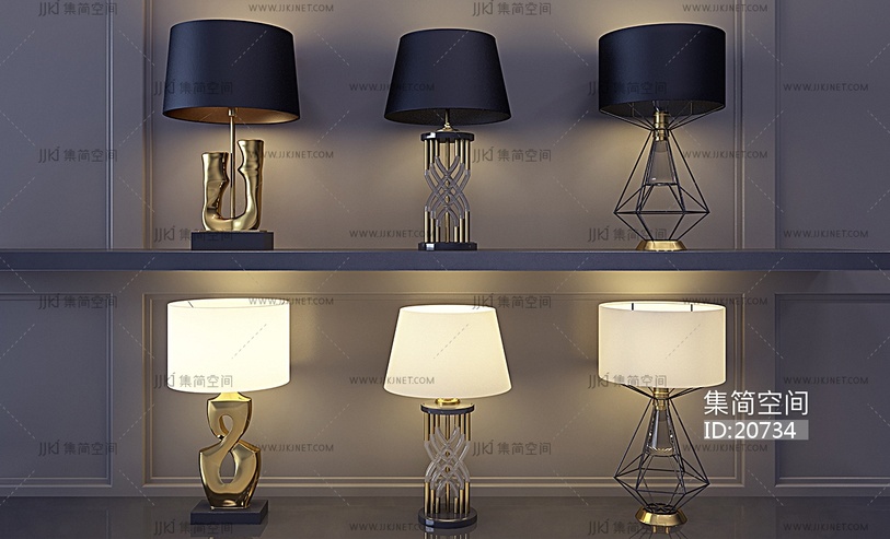 H21-0214现代简欧式台灯组合1 3d模型下载 [模型ID:20734]