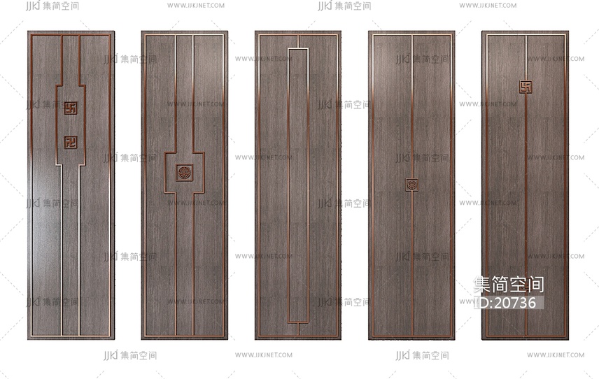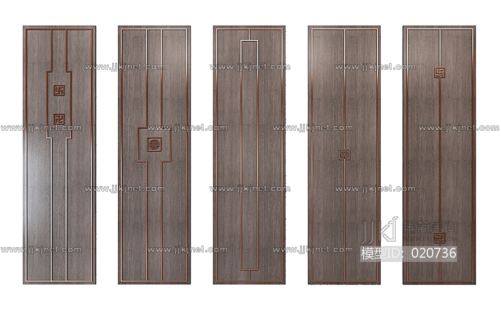 H24-0214新中式隔断衣柜门板1 3d模型下载 [模型ID:20736]