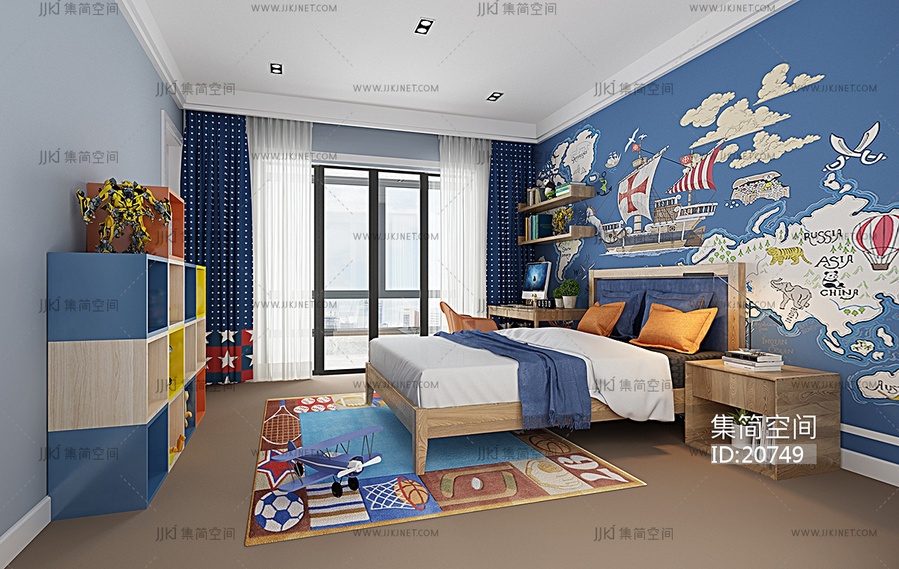 07-现代儿童房,儿童床学习桌-3d模型下载