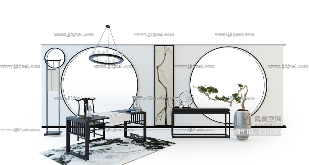 G81-17中式书桌条案中式书桌条案 3d模型下载 [模型ID:2080]