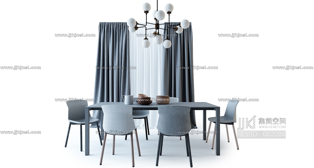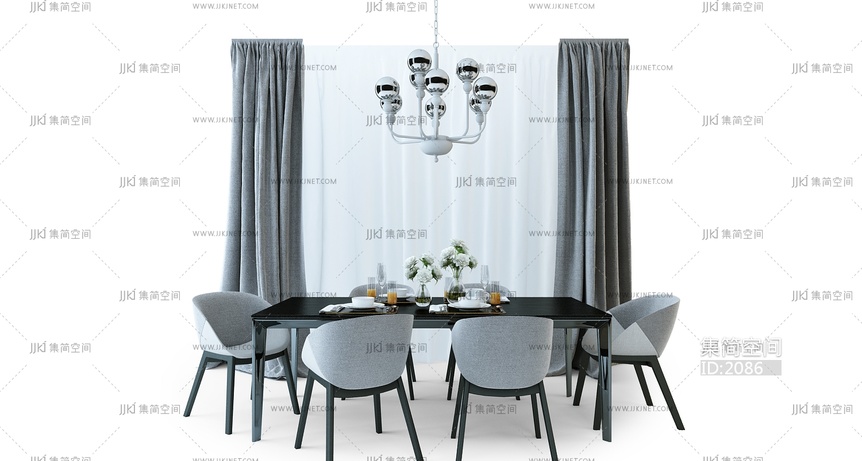 H-01-321现代餐桌椅组合 3d模型下载 [模型ID:2086]