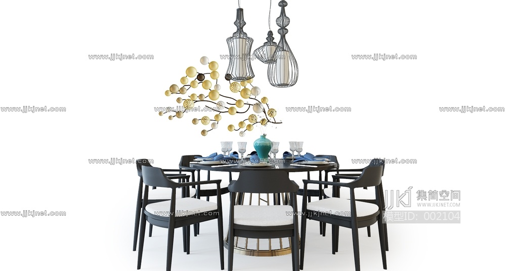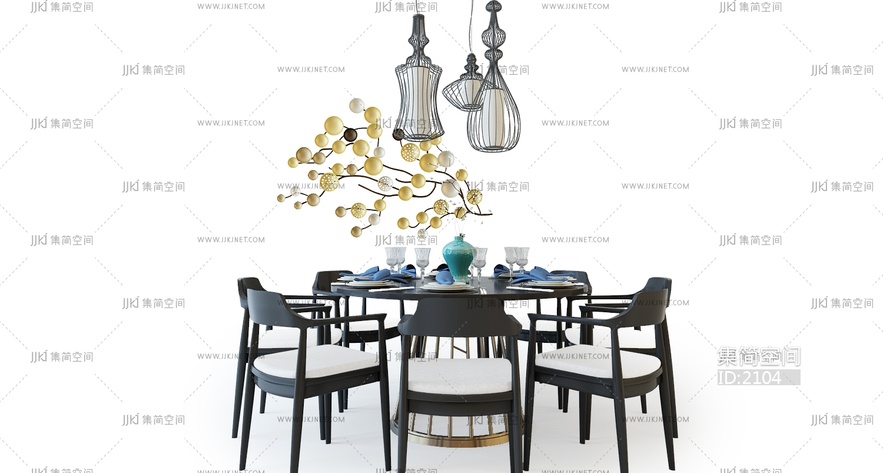 L09-17中式餐桌椅组合 3d模型下载 [模型ID:2104]