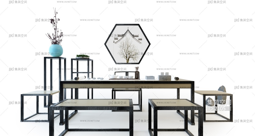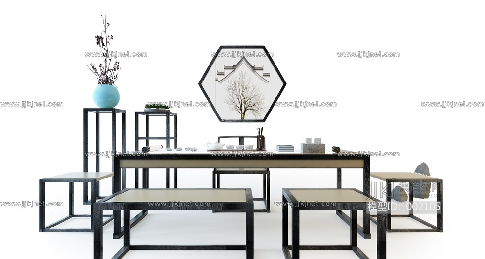 L12-16中式书桌 3d模型下载 [模型ID:2105]