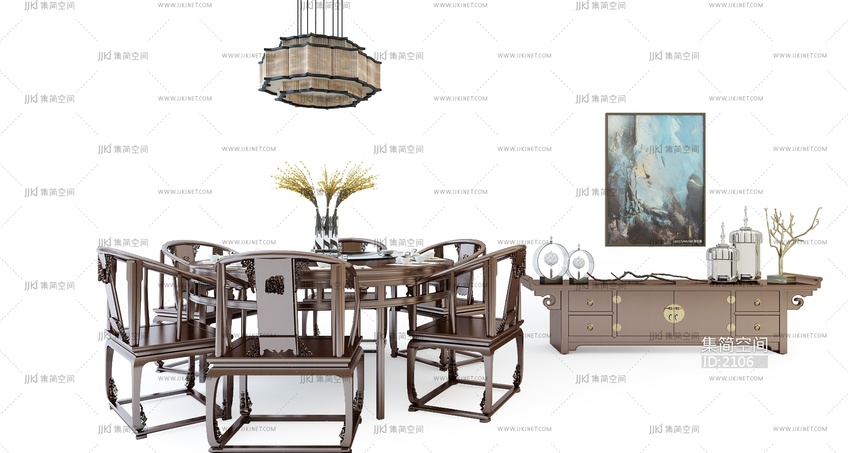 L71-17古典中式餐桌椅电视柜 3d模型下载 [模型ID:2106]