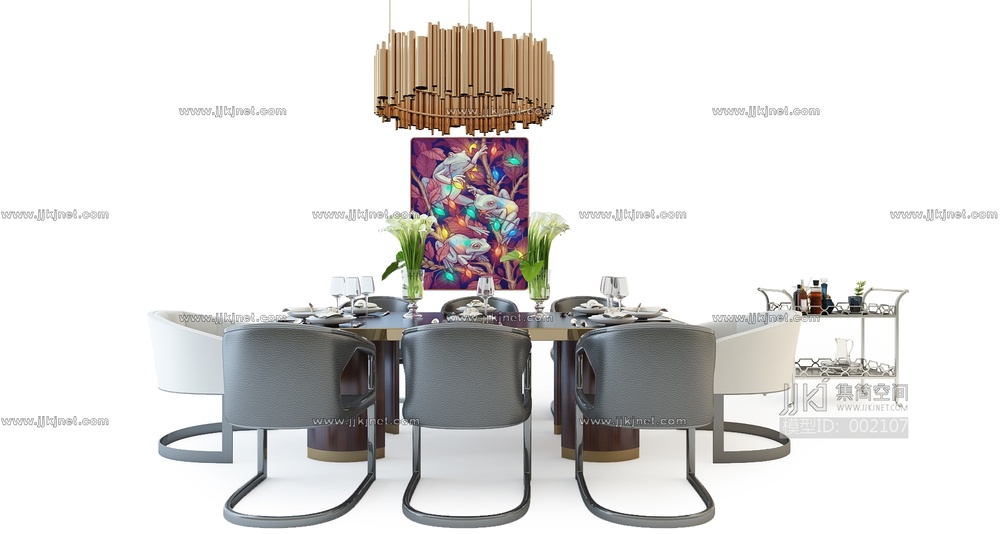 L72-17现代餐桌椅备餐柜 3d模型下载 [模型ID:2107]