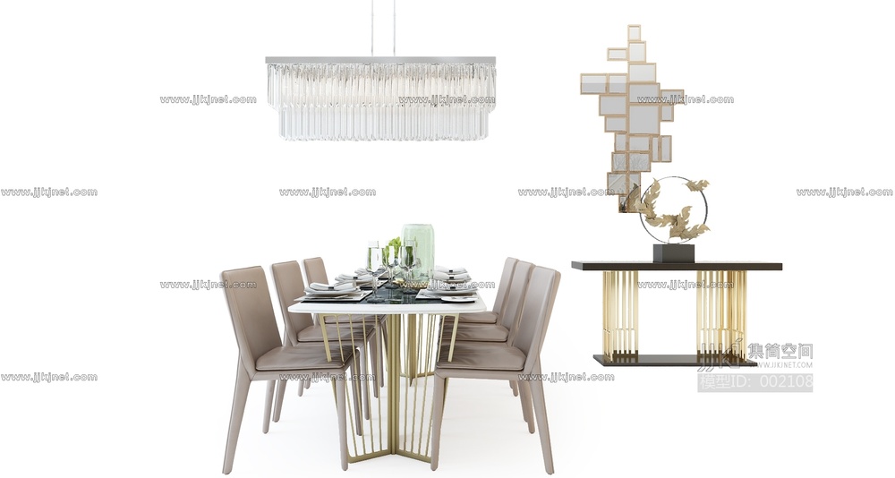 L74-17现代餐桌椅中式条案 3d模型下载 [模型ID:2108]