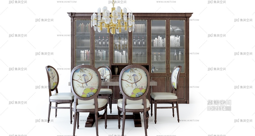 Z21-16欧式餐桌椅组合酒柜 3d模型下载 [模型ID:2114]