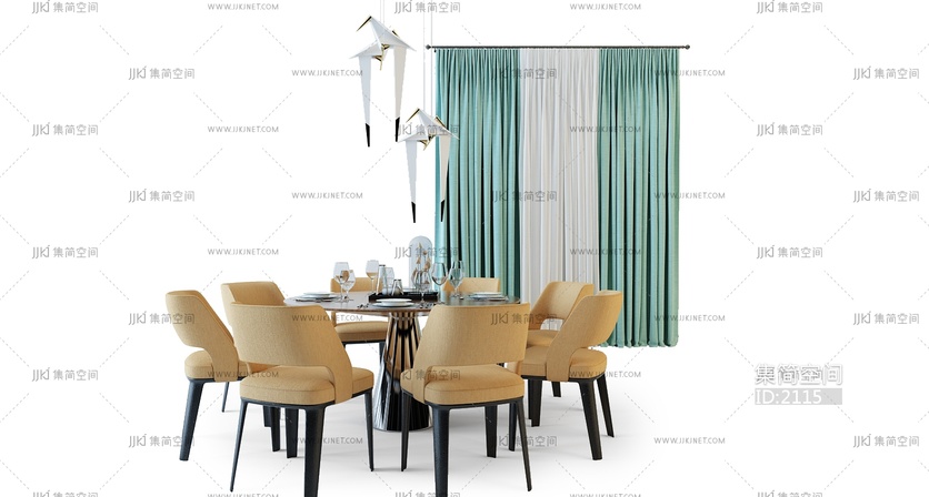 Z22-16现代餐桌椅组合 3d模型下载 [模型ID:2115]