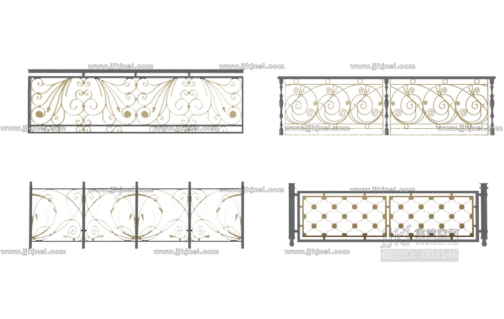 X07-0322欧式铁艺雕花护栏 3d模型下载 [模型ID:2146]