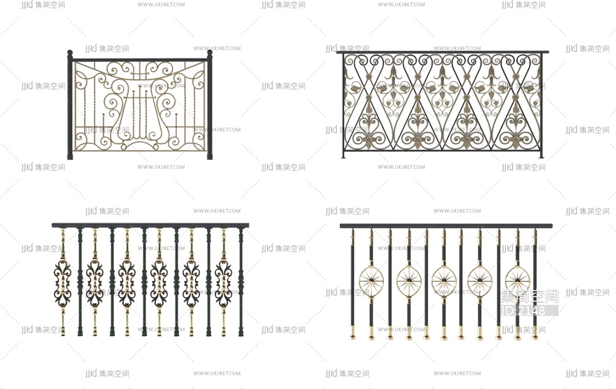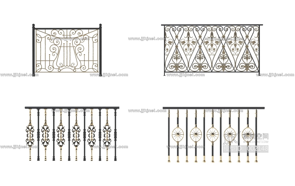 X09-0322欧式铁艺雕花护栏 3d模型下载 [模型ID:2148]