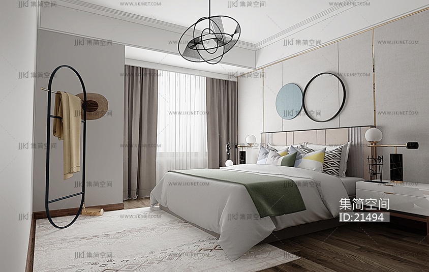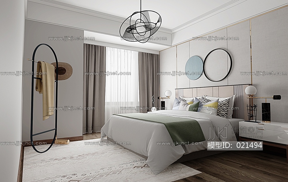 6法式中古家居卧室_主卧_飘窗卧室_高级灰卧室3D模型cr3d模型下载