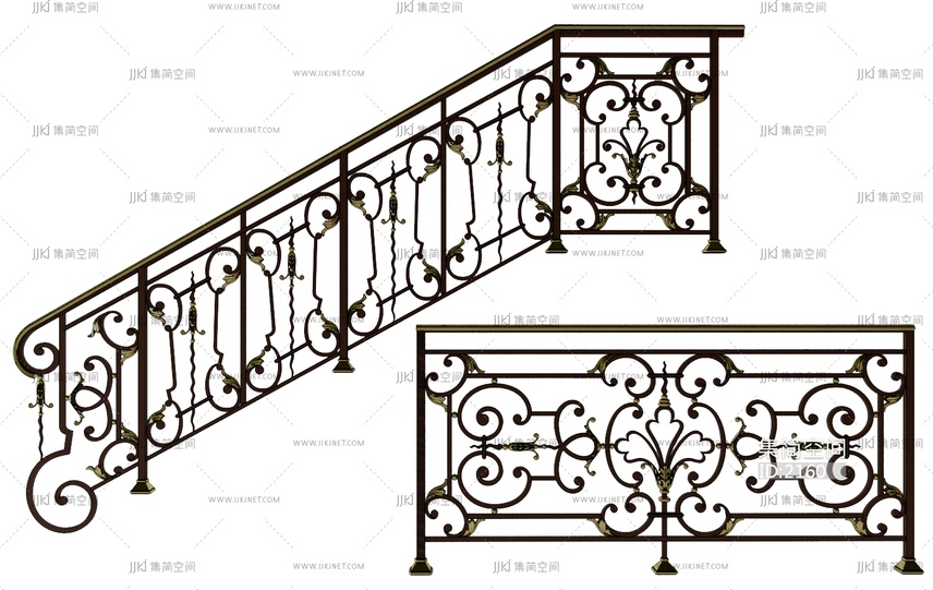 X21-0322欧式铁艺栏杆护栏 3d模型下载 [模型ID:2160]