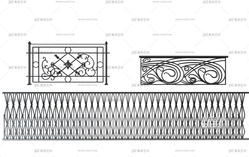 X33-0322铁艺雕花栏杆 3d模型下载 [模型ID:2172]