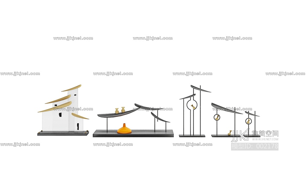 现代新中式雕塑摆件_饰品摆件组合3D模型3d模型下载