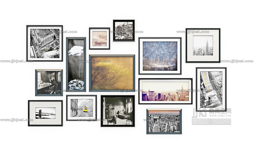 北欧现代装饰画挂画黑白照片墙 3d模型下载 [模型ID:2202]