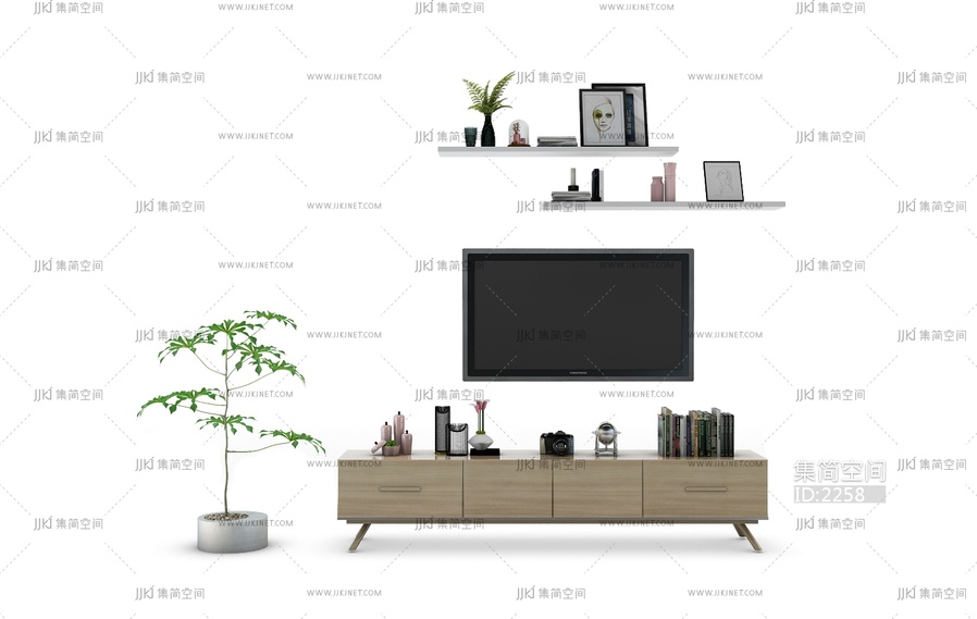 016电视柜组合 3d模型下载 [模型ID:2258]