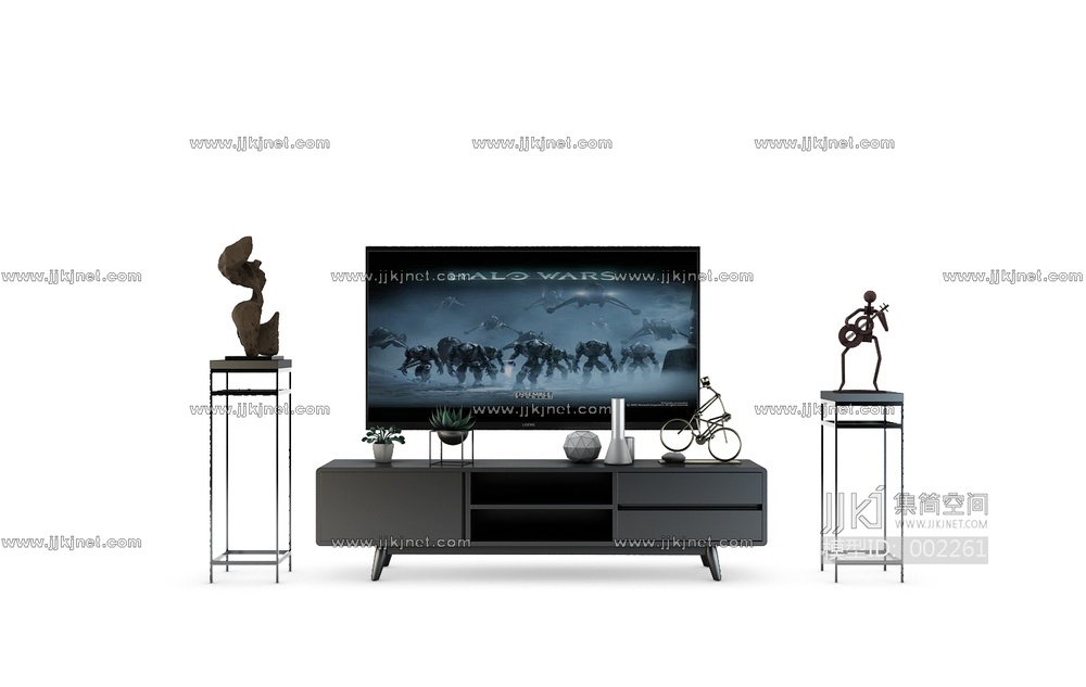 现代电视背景墙,满墙电视柜,电视机,储物柜,饰品摆件3D模型3d模型下载