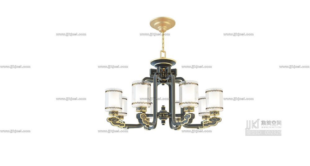 X24-0327新中式吊灯组合 3d模型下载 [模型ID:2329]