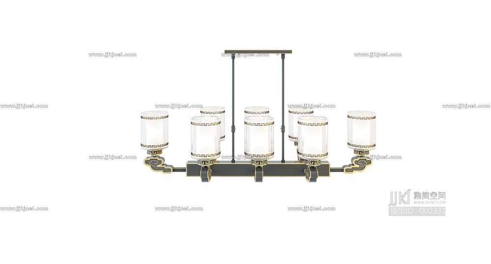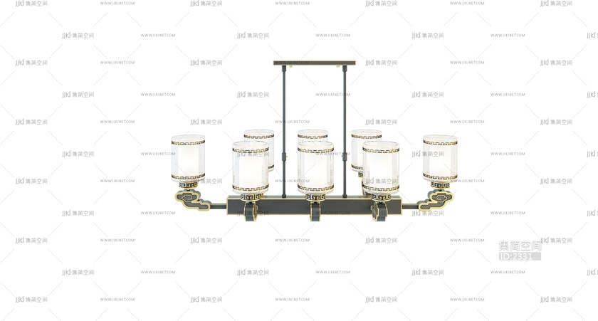 新中式吊灯长条吊灯3D模型(2021)3d模型下载